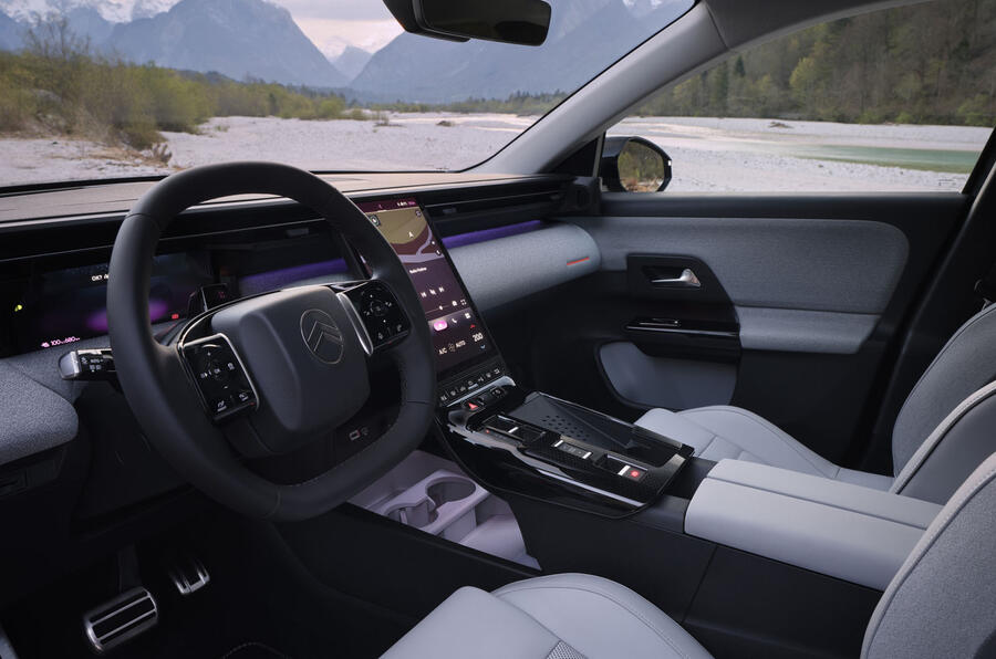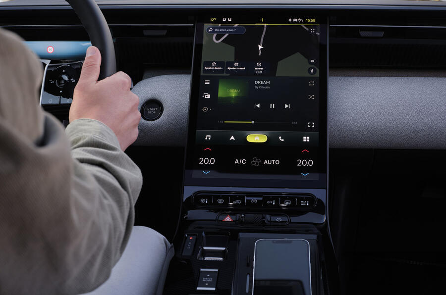 At the centre of this new dashboard is an expansive 'floating' touchscreen that Citroën says is the largest yet fitted to a Stellantis car. It largely replaces physical controls but has been designed for ease of access on the move, with fixed status and control bars, programmable widgets and direct access to the climate control.