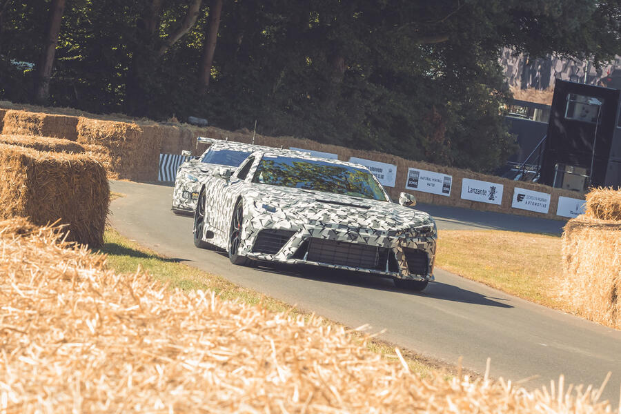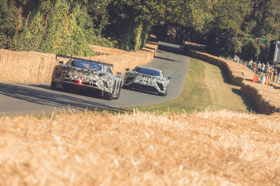 Running up the Goodwood hill, the soundtrack of the GT3 prototype - with a huge rear wing - is unmistakably that of a highly strung V8, but the quieter road car mule suggests it will add some type of hybrid assistance, most likely to meet ever-stringent emission regulations.