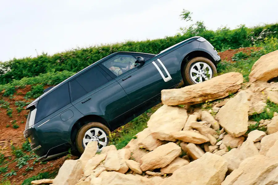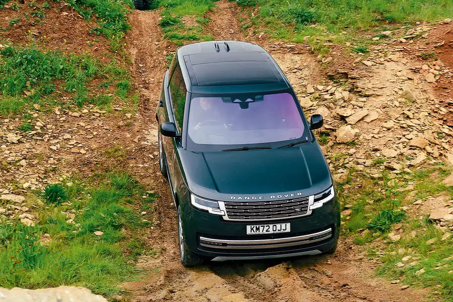 The Range Rover is lucky today in that it’s dry, so the on-road tyres (a set of 20in Michelin all-seasons) don’t struggle to contain the 2695kg mass from slipping with the gradient. If it was wet, it would be a different story.