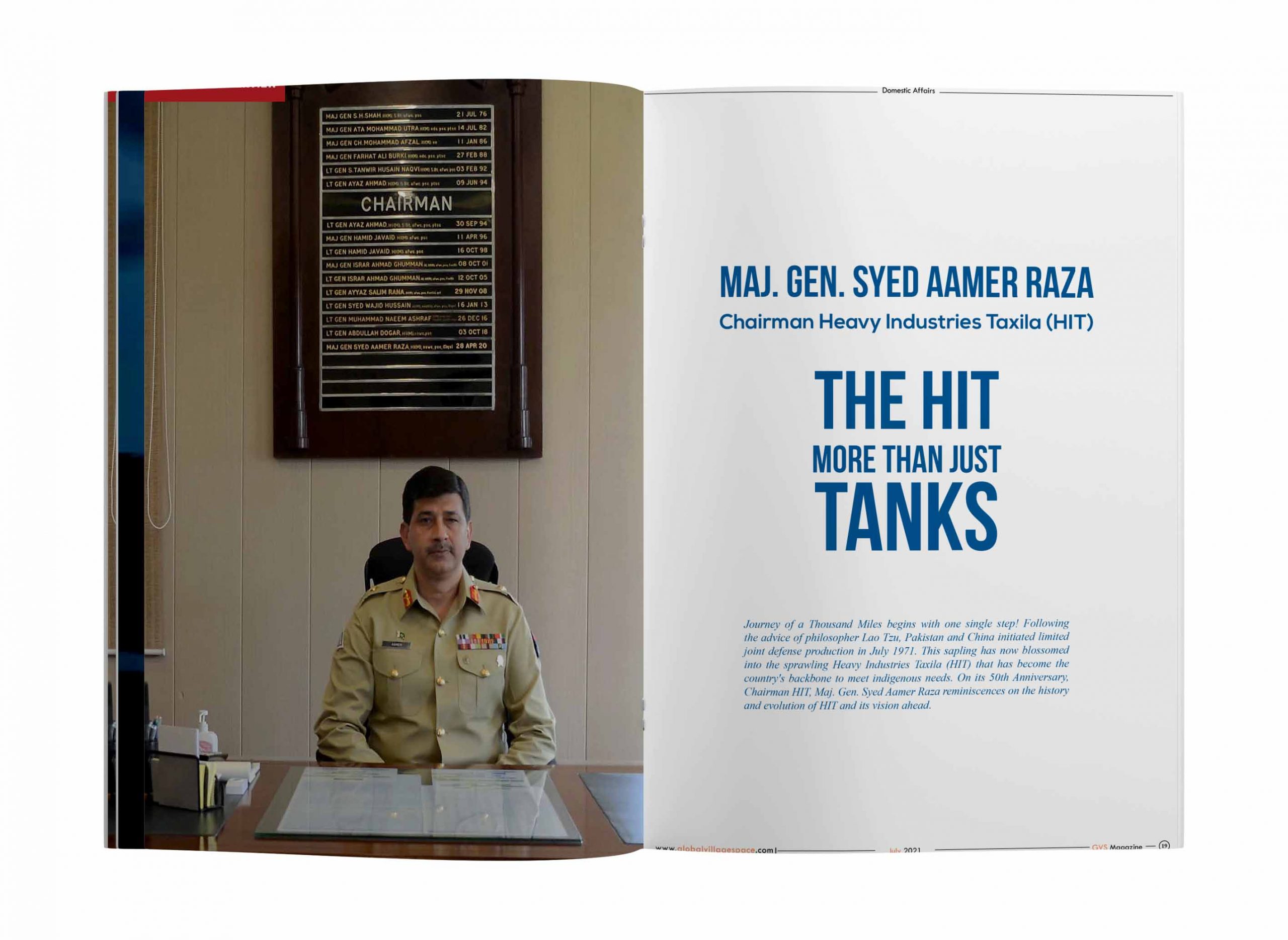 Interview was conducted by Editor Global Village Space (GVS) in Chairman’s Secretariat inside Heavy Industries Taxila (HIT) on 1st July 2021.