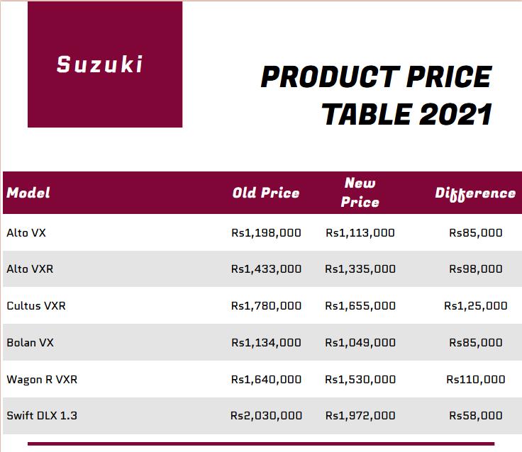 These are the updated price lists for the most prominent car companies in Pakistan at the time.