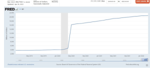 To understand its magnitude, the total M1 money supply (total paper notes) in circulation at the start of the COVID-19 Pandemic was 4.7 trillion dollars, and in March 2022, it was $20.7 trillion.