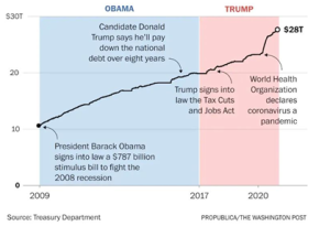 The United States is a debt economy. The national debt almost rose by $7.8 Trillion during Trump’s presidency and currently stands roughly at a whopping $30 Trillion.