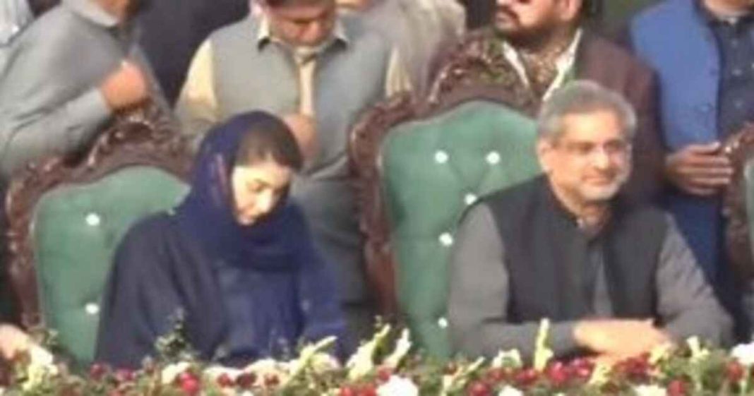 Sunday, Maryam Nawaz addressed a workers’ convention in Rawalpindi, flanked by senior PML-N leaders, including Shahid Khaqan Abbasi who is believed to be unhappy with Maryam Nawaz’s recent promotion to the party’s top rank.