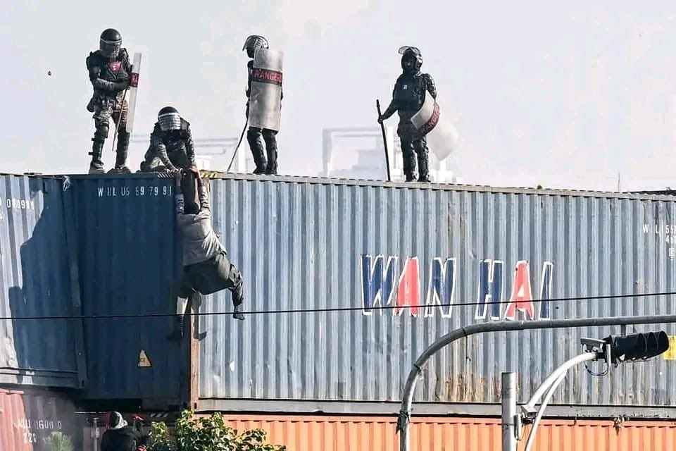 A shocking incident during a protest in the capital has sparked outrage after footage surfaced of security forces allegedly throwing a man off a container, resulting in his death. The man, identified by witnesses as a protester who had paused to pray, reportedly died from a broken neck after the fall.