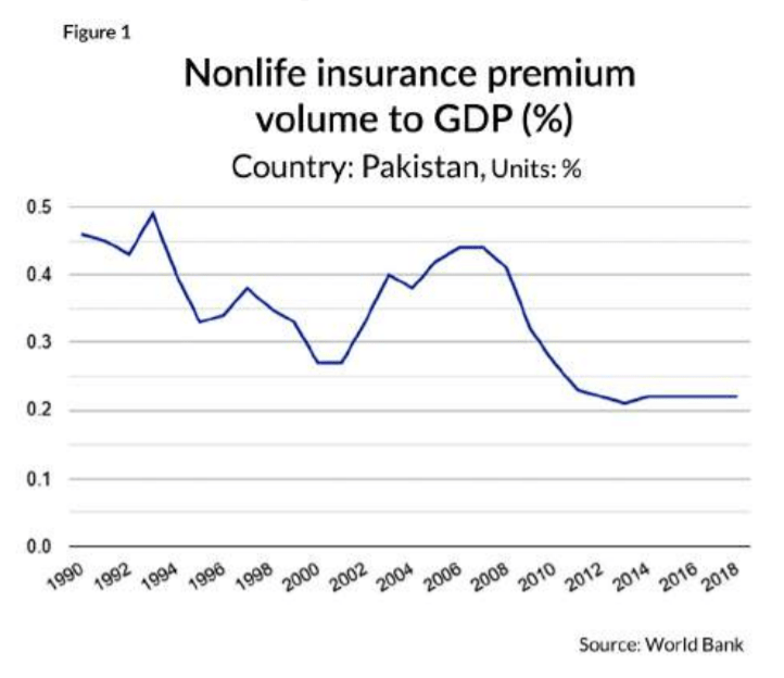 In Pakistan, the penetration of the insurance industry has been historically low. Official data from the World Bank shows it to be less than 1% and this threshold has never been broken in the past 25 years. It has one of the lowest penetration percentages in the region. The Insurance penetration of a country represents the premium volume collected by the companies as a percentage of GDP.