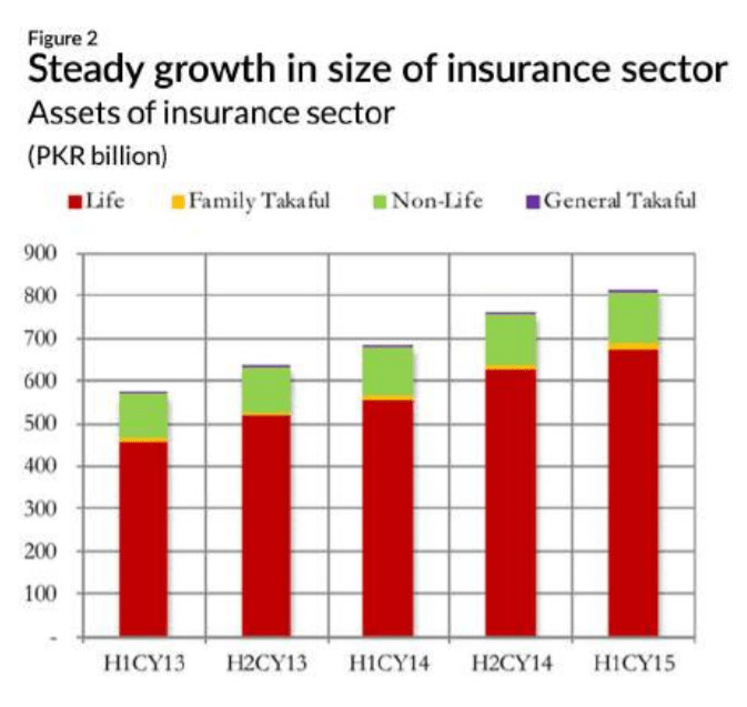 Pakistan has large young demographics which provides encouraging prospects for the industry. The insurance sector (life and non-life) has seen impressive growth in the past five years. Improvements in economic activity and law and order, as well as the industry’s increasing use of non-conventional distribution channels such as through banks or social media, have helped to increase the insurance sector’s presence.