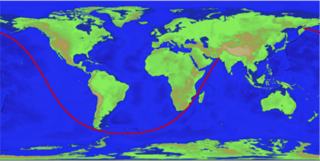 “The journey would take a boat from the sandy shores near Sonmiani, Pakistan, down through the gap between Madagascar and continental Africa, threading the needle between South America and Antarctica, and finally heading north-northwest across the Pacific Ocean while dodging the Alaskan archipelago until landing on the frigid beaches of the Karaginsky District in Russia” read the article.